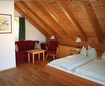 Double room with west-facing balcony, bathroom and separate WC, kitchenette and dining area in the living room, gallery with double bed and pull-out sofa for two people, north-facing balcony, shower/WC for 4 to max. 6 people